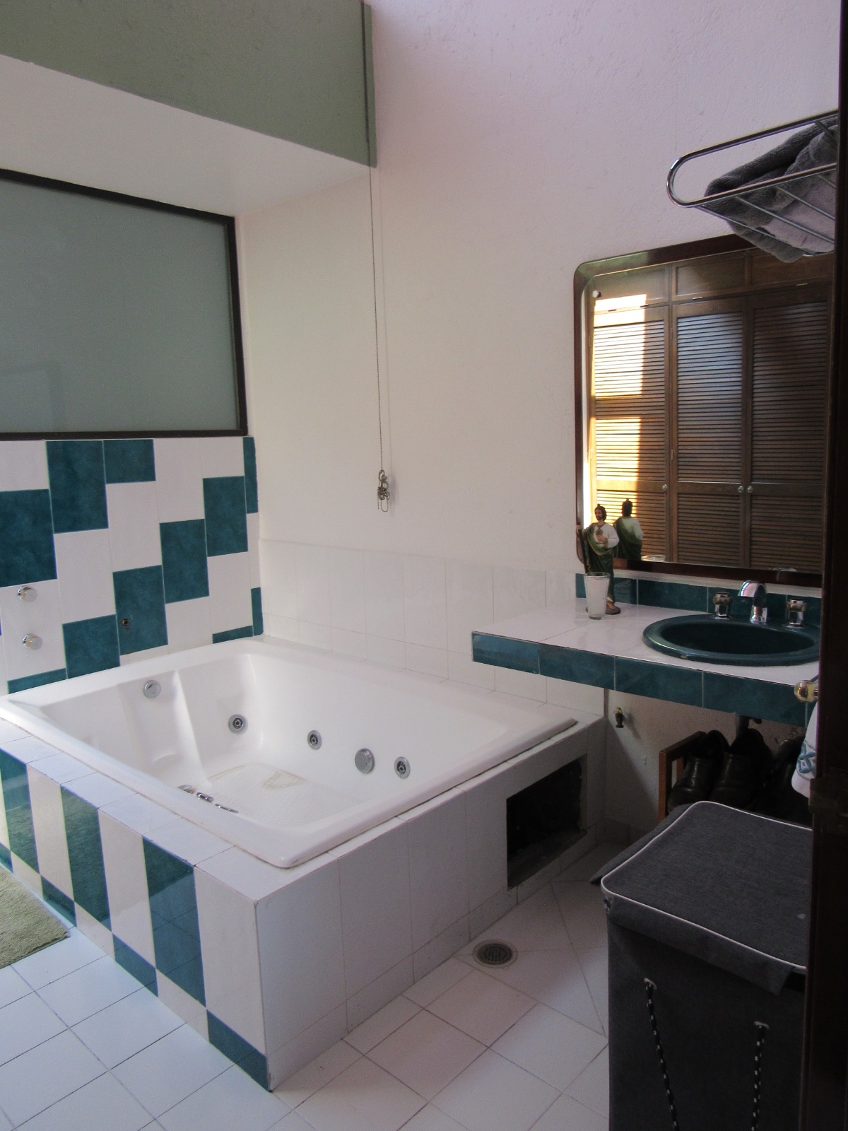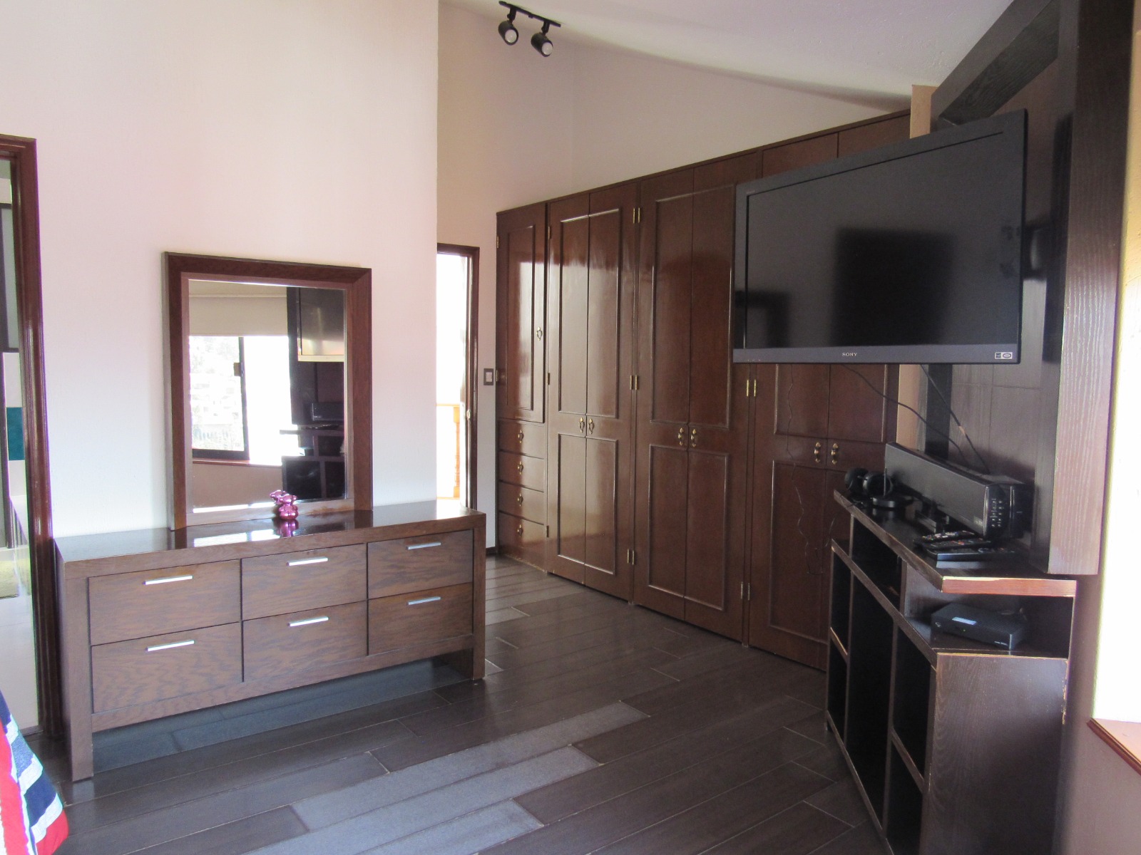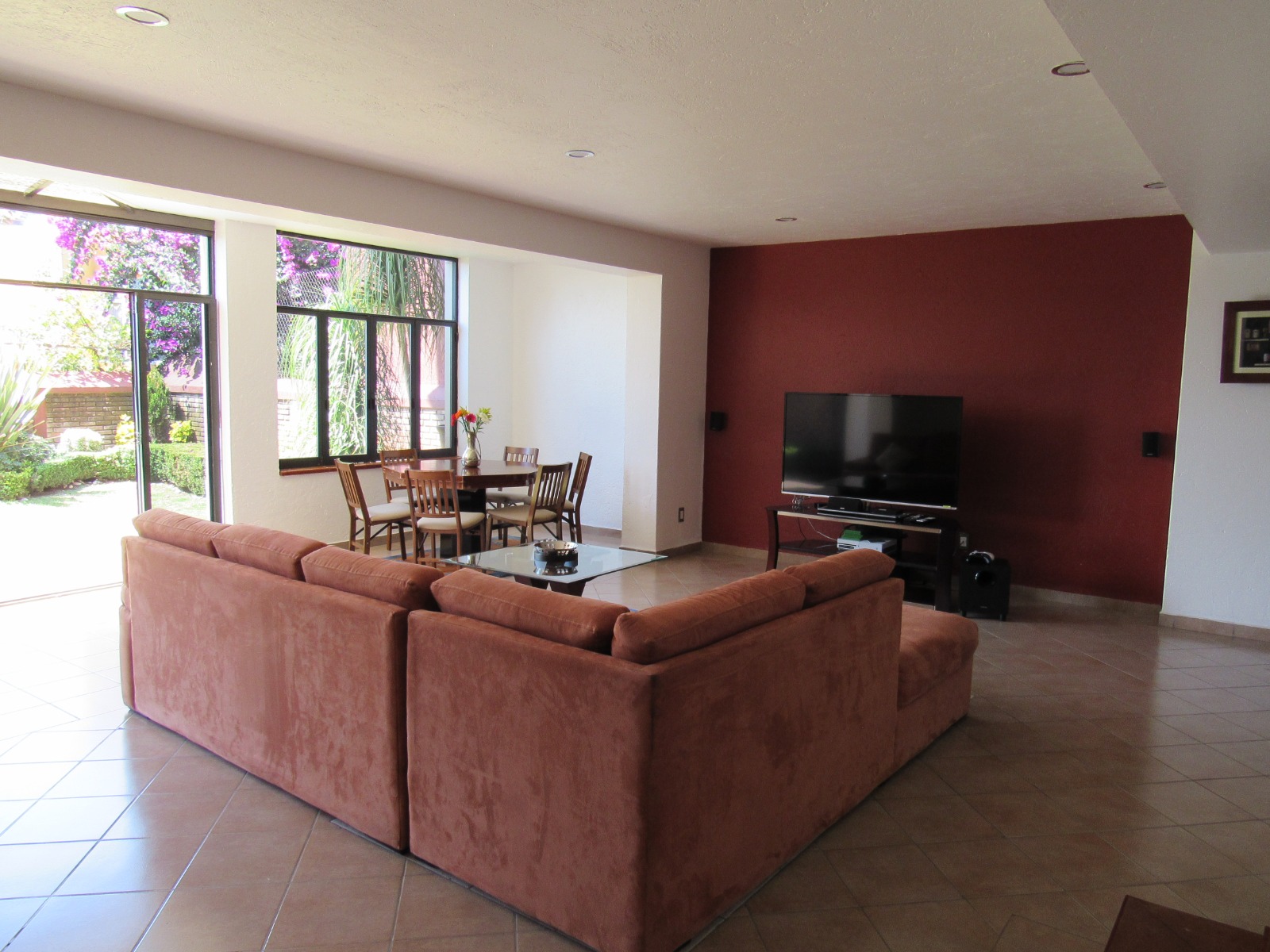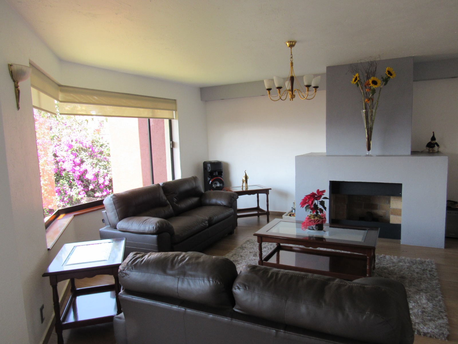 Hermoso espacio para sala y comedor con chimenea y vista al jardín. La cocina integral cuenta con espacio para desayunador y alacena. En el recibidor se encuentra el baño de visitas. El salón de usos múltiples, ubicado en la planta baja, tiene salida al jardín y un medio baño. La recámara principal es amplia, con vestidor, jacuzzi y baño completo. Las recámaras secundarias 1 y 2 son de excelente tamaño, compartiendo un baño completo y vestidor.